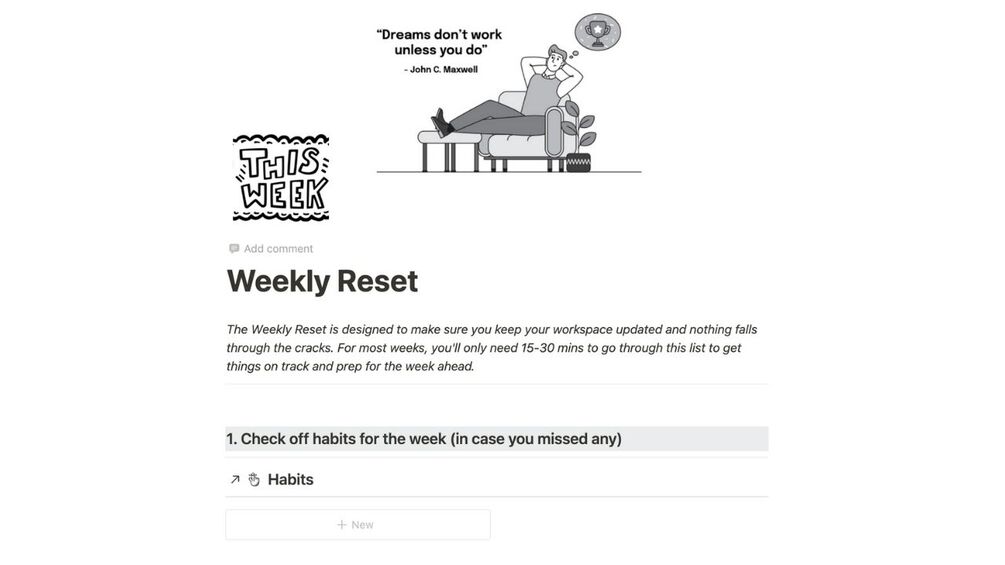 Weekly and monthly reset template to ensure you're keeping up with goals and projects.