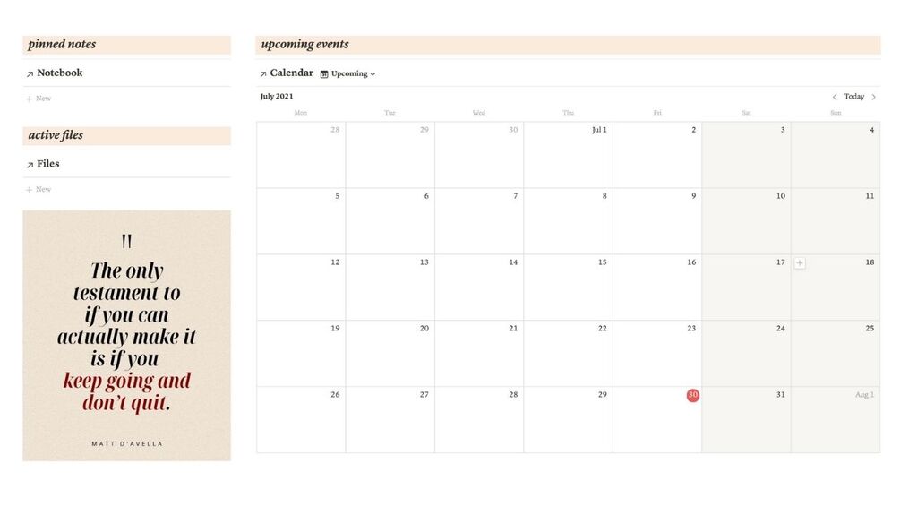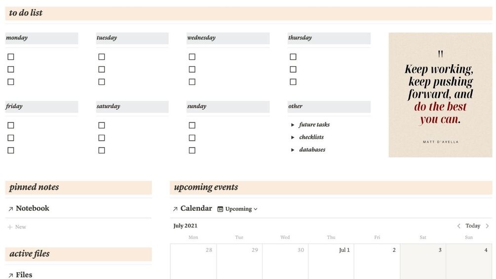 Simple Productivity System Notion Template, Inspired by Matt D'Avella